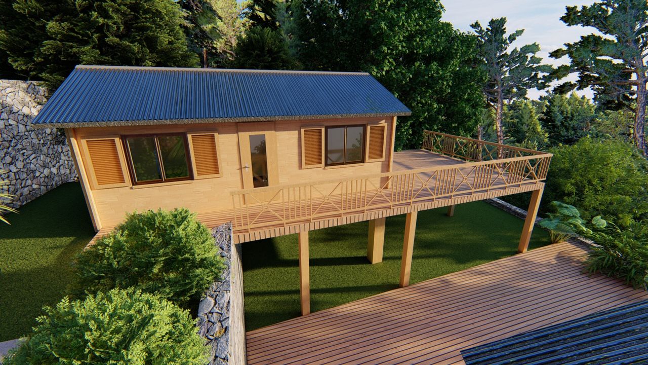 Nous sommes tombés amoureux de cette parcelle de 1300 m2 qui jusque-là n'avait jamais connu la moindre habitation. Surplombant une ravine c'est à 220 mètres d'altitude presque en pleine ville que nous avons décider d'y implanter ce havre de paix composé de 4 beaux chalets bois en madrier.